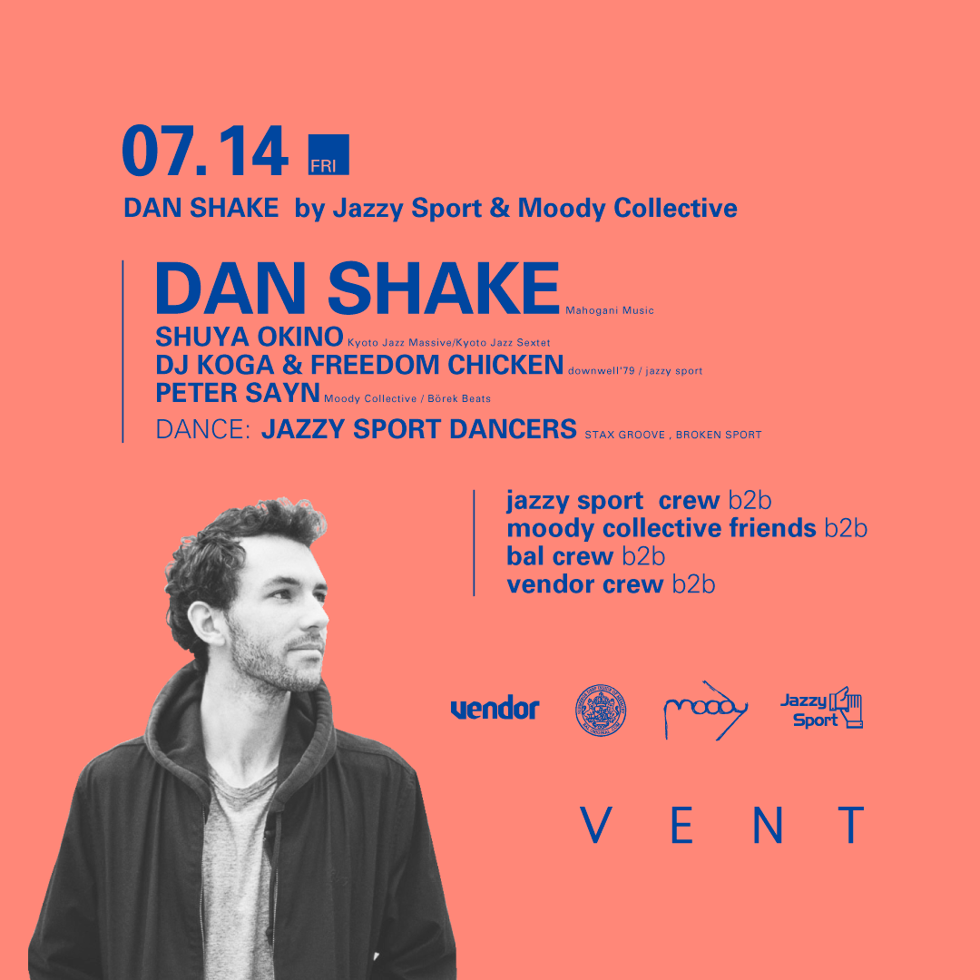 今回はJazzy Sportがスペイン・マドリードを拠点とするMoody Collectiveとのコラボレーションによるパーティーの記念すべき第一回目に出演となる。音楽だけにとどまらず様々なカルチャーに深く根ざすJazzy Sportクルーらしく、BALやVendorも参加するといったミクスチャーなパーティーは、Dan Shakeのプレイスタイルと同じく多様性に富んだ素晴らしい一夜になるだろう!