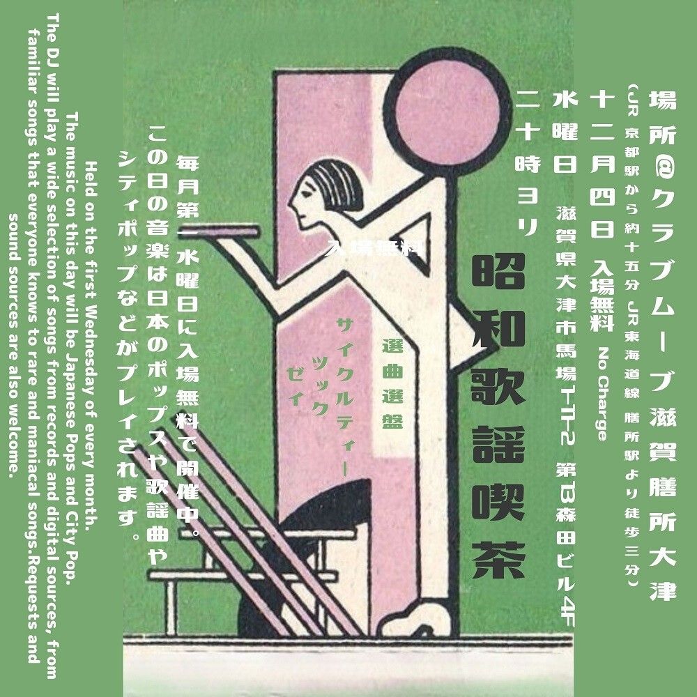 Held on the first Wednesday of every month, admission is free.The music on this day will be Japanese pop and city pop.