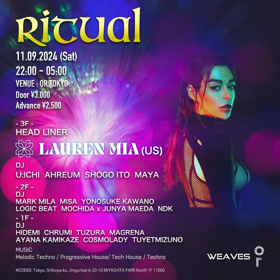 渋谷のランドマーク『MIYASHITA PARK』にて展開する『OR』にて開催されるメロディック/プログレッシブハウスパーティー『Ritual』