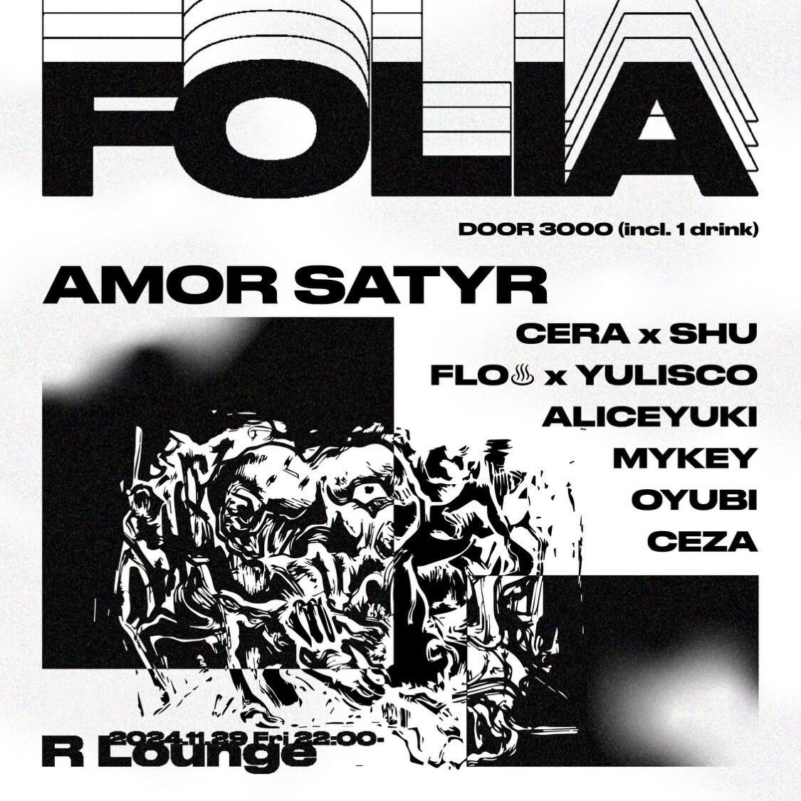 2023年4月にスタートし、東京を拠点に活動を展開するベース&テクノ・パーティークルーFOLIA。Flo x Yulisco、cera x shu、cezaの5名によるコレクティヴで、フランス、ブラジル、日本といった多様なルーツを持つ。これまでStones Taro (日本)、Vonriu x Mate (フランス)、FUKHED (オーストラリア)、Flansie (オランダ)など、ワールドワイドなラインナップを招聘しシーンを盛り上げている。