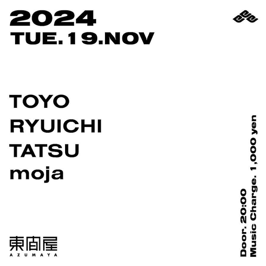 2024.11 19 NOV Azumaya -Tuesday- DISCO 0 Shares Facebook Twitter google Line DATE: 2024-11-19 TUE OPEN: 20:00 VENUE: PRICE: Music Charge 1,000yen LINE UP: TOYO RYUICHI TATSU moja