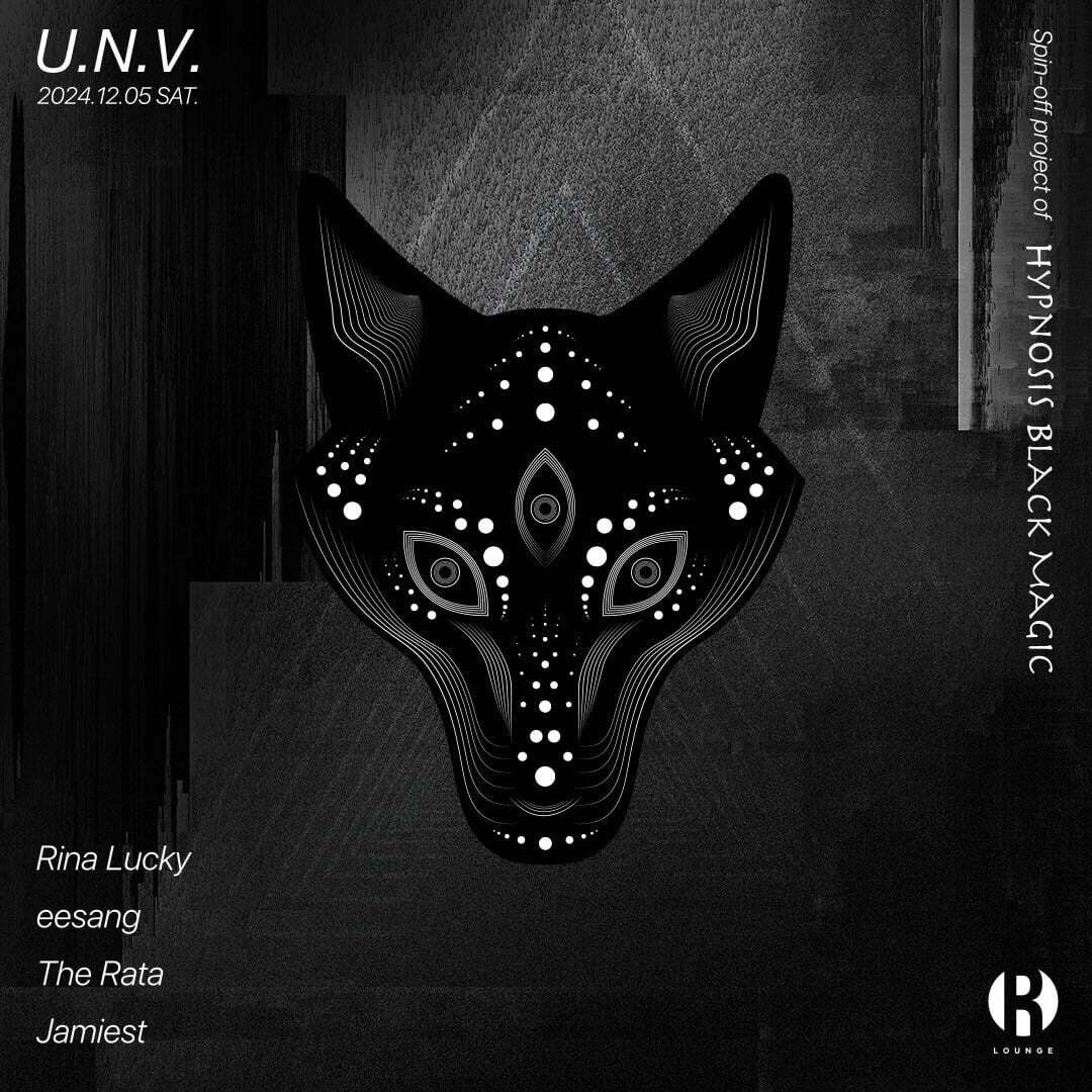 R LOUNGEの木曜レギュラー「U.N.V.」にて、韓国アンダーグラウンドシーン発のダークレイブ「Hypnosis Black Magic」とのコラボレーションパーティーが堂々開催。この日はレジデントのJAMIESTとEESANGが来日し「Hypnosis Black Magic」の独自の世界観を展開する。更に今年9月に梨泰院のOFF THE RECORDで開催された「Hypnosis Black Magic」に出演を果たしたTHE RATAと、今後韓国のアンダーグラウンドシーンでも活躍の可能性が期待されるRINALUCKYが登場する。