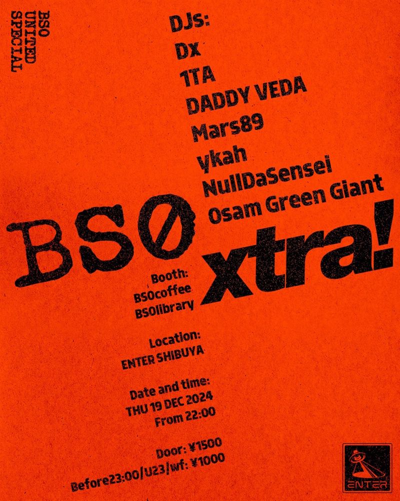 多様なバックボーンを持ったDJたちが、ダブ、ダブステップ、グライム、ジャングル、ブレイクビーツ、テクノなどのスタイルを“現代のパンク”と捉えて一夜に落とし込む、BS0xtra(ビー・エス・ゼロ・エクストラ)。 2024年の最後となる今回は、BS0 gangのDx、1TAを交えてお送りする。 スペシャルなセッションに乞うご期待!!!