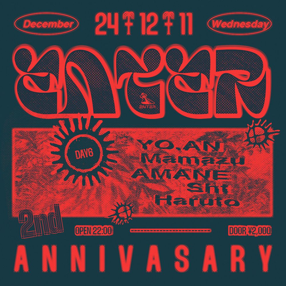 2022年12月15日にオープンしたENTER SHIBUYA。この度、2周年を祝した2週間に及ぶ9日間のアニバーサリーパーティを開催する。記念すべきDAY6は人気スケートボードブランドとのコラボレーションやフリーダムなアートワーク、数々のリミックスワークやEPのリリースなど、卓越した創造力を持つ異端集団〈Hole and Holland〉よりYO.AN、Mamazuが登場。極上のリミックスワークにトラックプロデュース、国内外に多くのリスナーが存在する2者と、美容師と二足の草鞋で活動し、ENTERでU.N.Iを主催するハッピーハウスマスターAMANE、ユニット/パーティのReady or Notのメンバーであり、Cosmiaのレジデントを務めるSht、ENTERにてExpresseurを主催するHarutoが出演する。