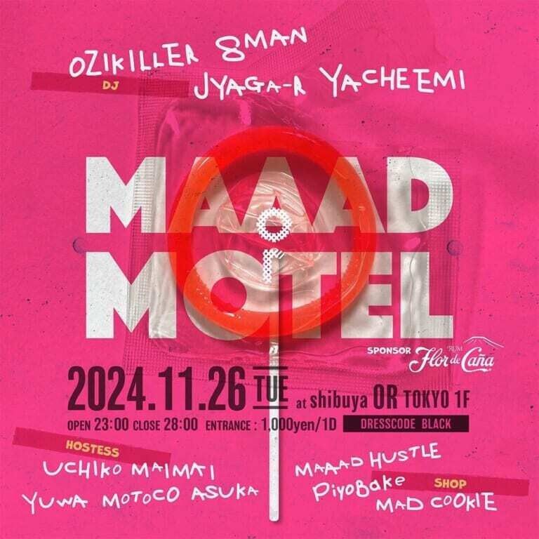 2024.11 26 NOV MAAAD ALLMIX 0 Shares Facebook Twitter google Line DATE: 2024-11-26 TUE OPEN: 23:00 VENUE: PRICE: 1,000yen/1D LINE UP: