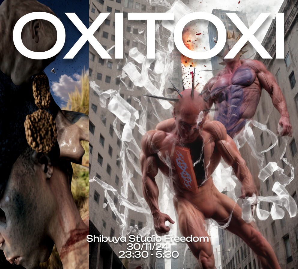 旅で出会ったアーティスト・デュオMESとKIM KHANが世の中に足りてないラブ・ホルモンを分泌するパーティー「oxitoxi」!来日初ライブのKIM KHANは2023年、SVBKVLTからEP「Entrancing」をリリース。歌舞伎町BENTENでも話題になったチェン・ティエンジュオとのプロジェクトasian dope boys「TRANCE」に出演。ミクスチャーでエッジイなライブセットは見逃せない!東京拠点のDJからは縦横無尽に活躍するDIV☆、DJ CENTERFOLD、intoxxyがプレイ♡シークレットゲストには、なんとxxxxxで最高のプレイを見せたxxxxxxxxxがカムバック!アートシーンでも注目のMESと海野林太郎らが、陶酔空間へ誘う・:*+.