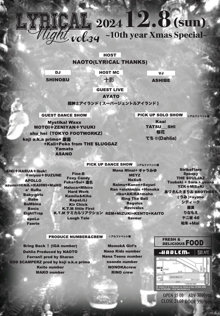 GUEST DANCE SHOW: Mystikal Waxx, MOTOI+ZENIYAN+YUUKI, shu_hei(TOKYO FOOTWORKZ), koji a.k.a primo+康壽+Kali+Peko from THE $LUGGAZ, Yamato, ASANO