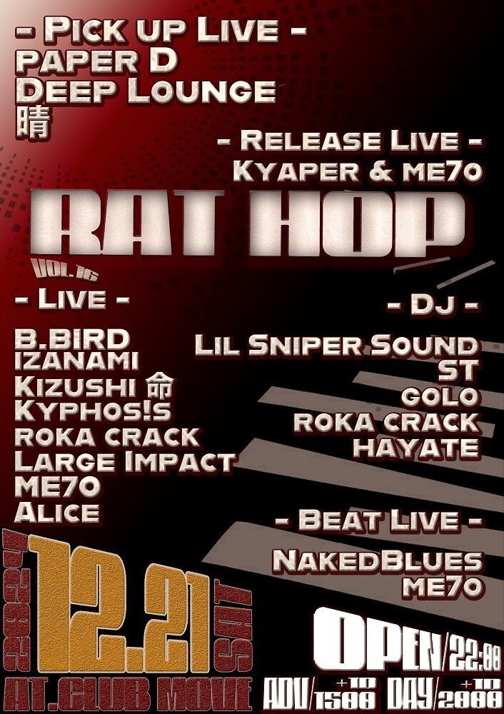 LIVE : B.BIRD / izanami / Kizushi 命 / Kyphos!s / Large Impact / ROKA CRACK / ME7O / Alice