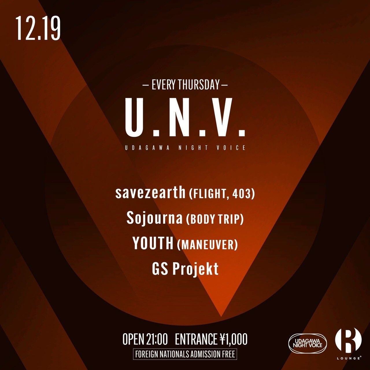 UDAGAWA NIGHT VOICE (U.N.V.), a night party every Thursday.