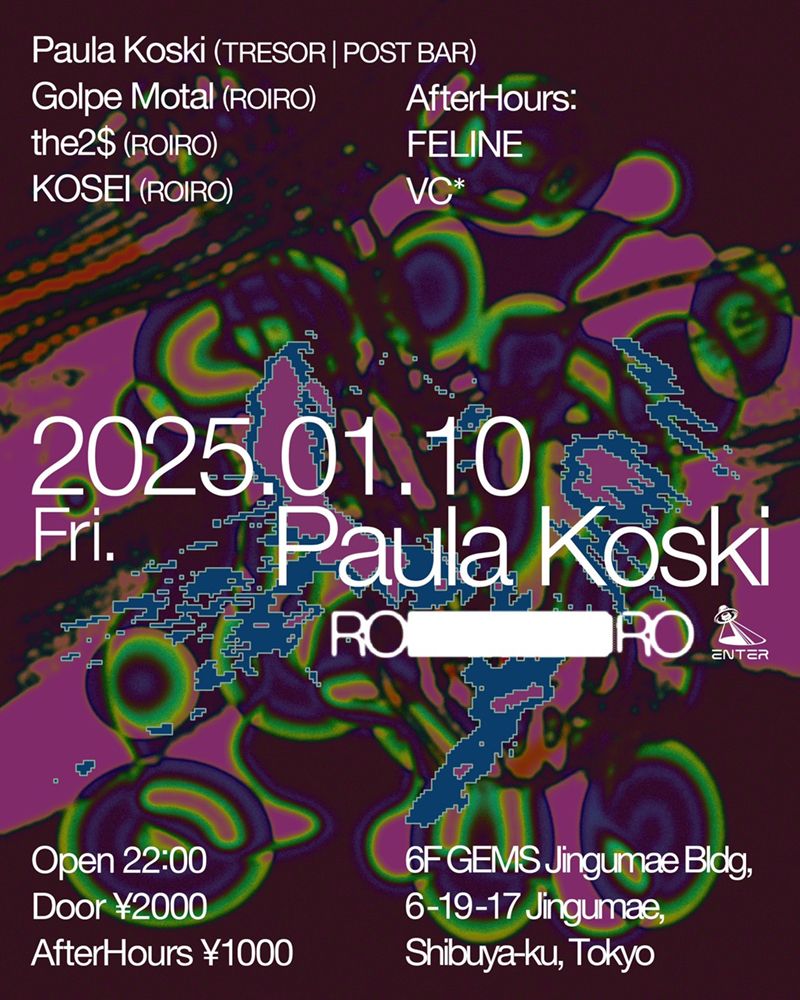 テクノシーン、クィアシーン共に、シーンの尖端をいく、ベルリンを拠点に活動し、テクノの名門レーベルでありナイトクラブである〈TRESOR〉のレジデントを務める腕利き、Paula Koskiが初来日。出身地であるフィンランドのヘルシンキに位置するPost Barでは自身が始動したINTERLINKを開催し、2024年9月には1周年を迎えた。LGBTQIA+コミュニティと、クィア・テクノ・シーンから広くインスパイアされた彼女のセットは、ハードミニマル、ハードグルーヴ、エレクトロ、ダブテクノなど、あらゆるエネルギーを伴い、マイノリティが求める精神の解放を目指す、エネルギーと熱情に溢れている。アップテンポで刺激的かつハードなトラックと、メンタルに作用するドープなトラックを掛け合わせるミックスが特徴的で、シーンを通じて経験してきた情熱が注ぎ込まれたストーリー性が評価され、一躍シーンの一角に躍り出た。ジャーナリスト出身の彼女はその後、テクノ・モノリスMonumentのライターとして仕事を続け、その経歴は枚挙に暇がないが、現在は自身の音楽に専念し、Berghain、RSO、Hall Tallinnをはじめ、ヨーロッパ内外の主要クラブに出演しDVS1、Aurora Halal、Stef MendesidisをはじめとするDJ等とともにダンスフロアへエネルギーを注ぎ込むことに全力を尽くしている。