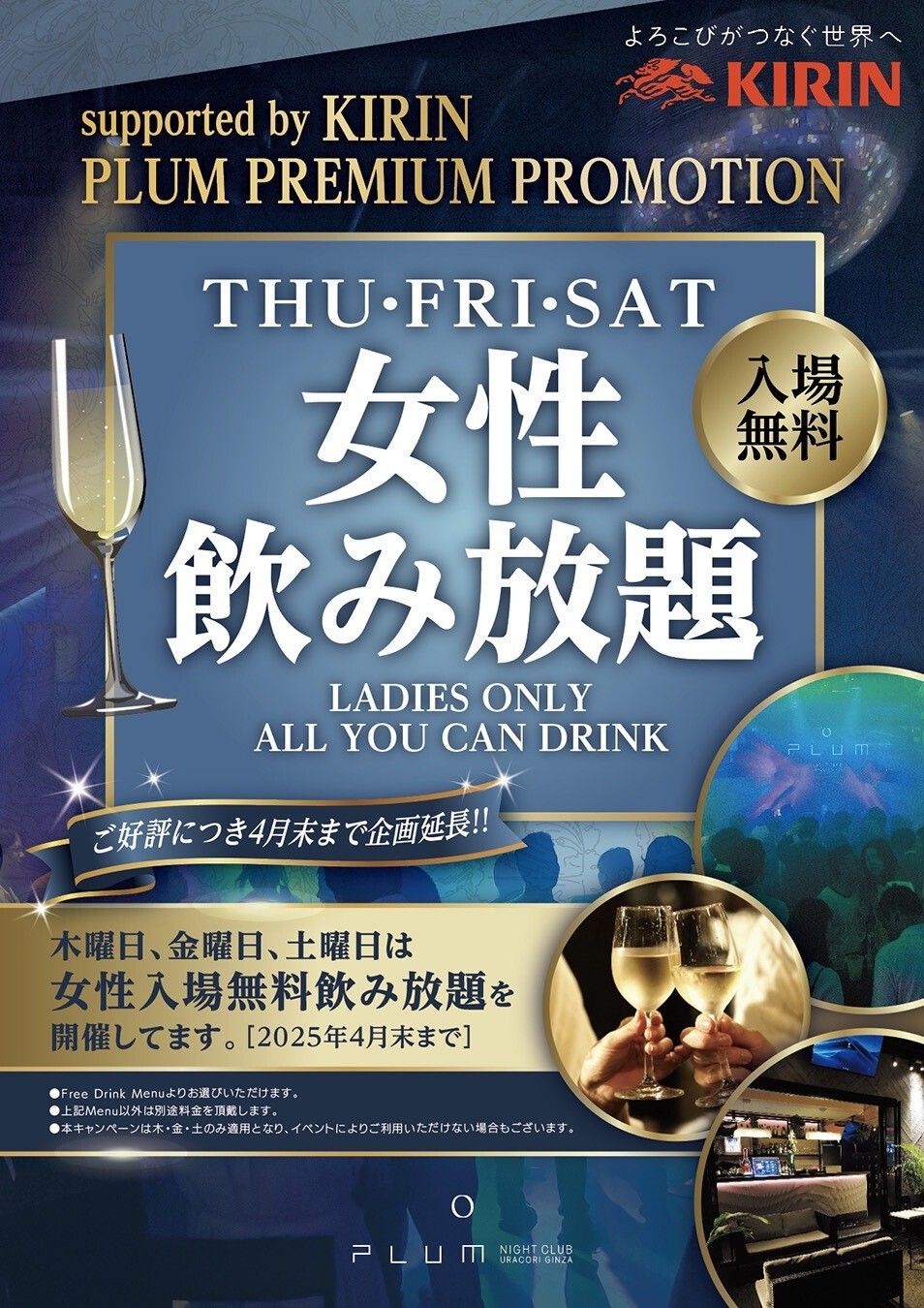 女性のお客様は入場無料&飲み放題!