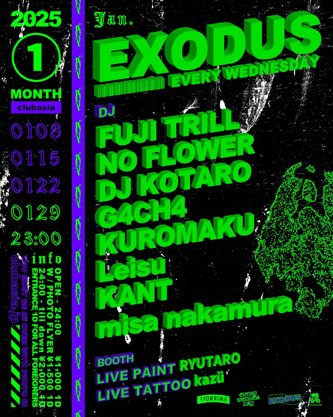 - OPEN - 24:00 ¥1,000 1D|W / WEB FLYER ¥1,500 1D|24:00 - LAST ¥2,000 1D