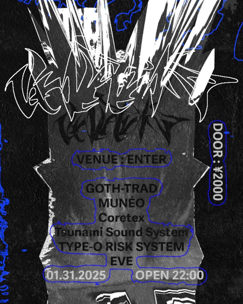 EVEが主催するハードテクノ・パーティVIXLATIXN。ENTERでの開催は昨年9月以来となる。新年の幕開けを締め括る1月最終日、日本初のダブステップレギュラーパーティBACK TO CHILL総帥のGOTH-TRADを筆頭に、都内某所で活躍する面々が出揃った。各所で暗躍する異端者たちとともに、暗い澱みを求めて電子音が混ざり合う。