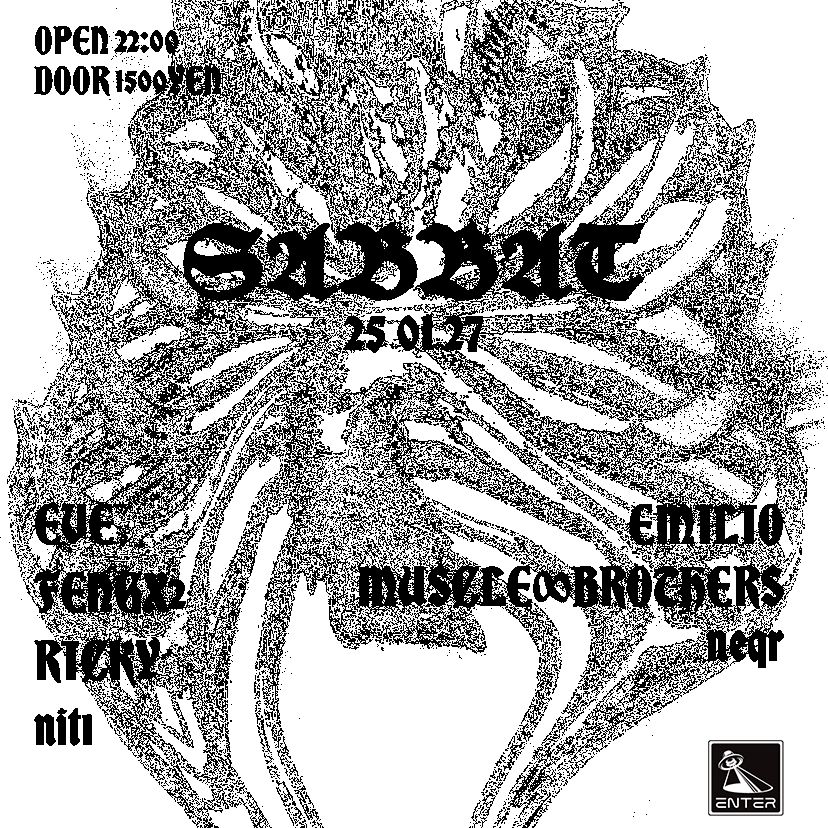 2024年、テクノを主軸にしたパーティVELTRAUMを始動させたnit1によるSABBAT。昨年7月に第1回目を開催した魔宴 SABBAT のvol.2を今回はENTERにて開催。東京の最前線で活躍するDJ陣に加え、大阪からFENGX2を迎え入れ、夜から朝まで鳴り止むことなくハードサウンドがフロアを震わせる。