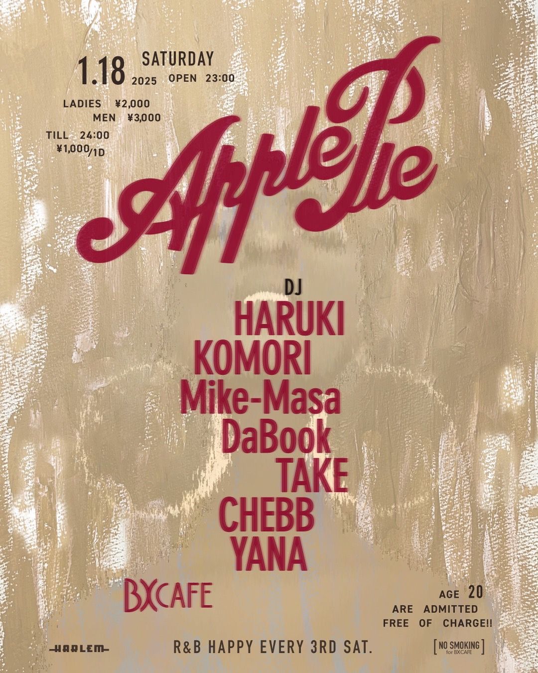 - LADIES ¥2,000 MEN ¥3,000 ※ till 24:00 ¥1,000/1d ※ AGE 20 ARE ADMITTED FREE OF CHARGE!!