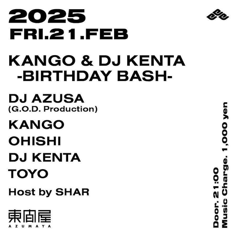 2025.02 21 FEB KANGO & DJ KENTA BIRTHDAY BASH! DISCO 0 Shares Facebook Twitter google Line DATE: 2025-02-21 FRI OPEN: 21:00 VENUE: PRICE: Music Charge 1,000yen LINE UP: DJ AZUSA (G.O.D. Production) KANGO OHISHI DJ KENTA TOYO Host by SHAR