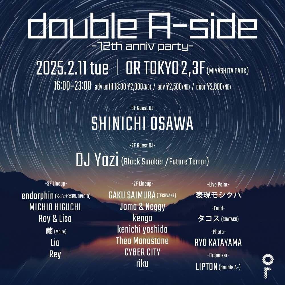 「double A-side」とは両A面、対極しつつも両A面(表裏一体)である音楽のジャンル・スタイルをお互いに認めあい、普段知らない人と繋がる楽しさや自分自身の今までにない可能性を見つけるパーティー。