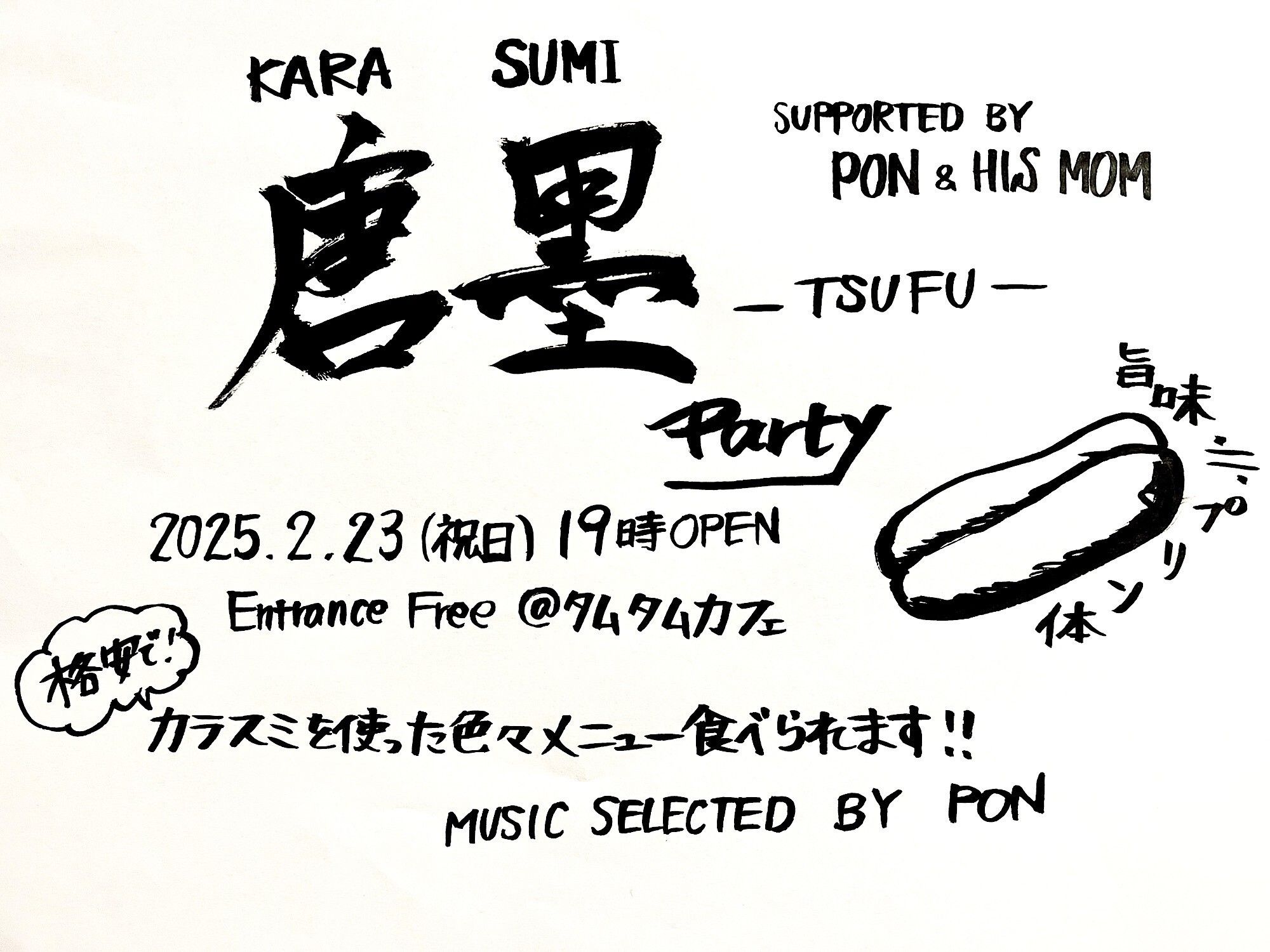 元味園の神様ポンちゃんプレゼンツ『唐墨Party -TSUFU-』開催!台湾から送られてきた高級唐墨を色々な料理でお出しする痛風まっしぐらなスペシャルパーティー!ポテサラ、パスタ、他にも色々全ての料理に唐墨イン!この日は格安で唐墨料理提供しますので是非お越し下さい。入場無料。