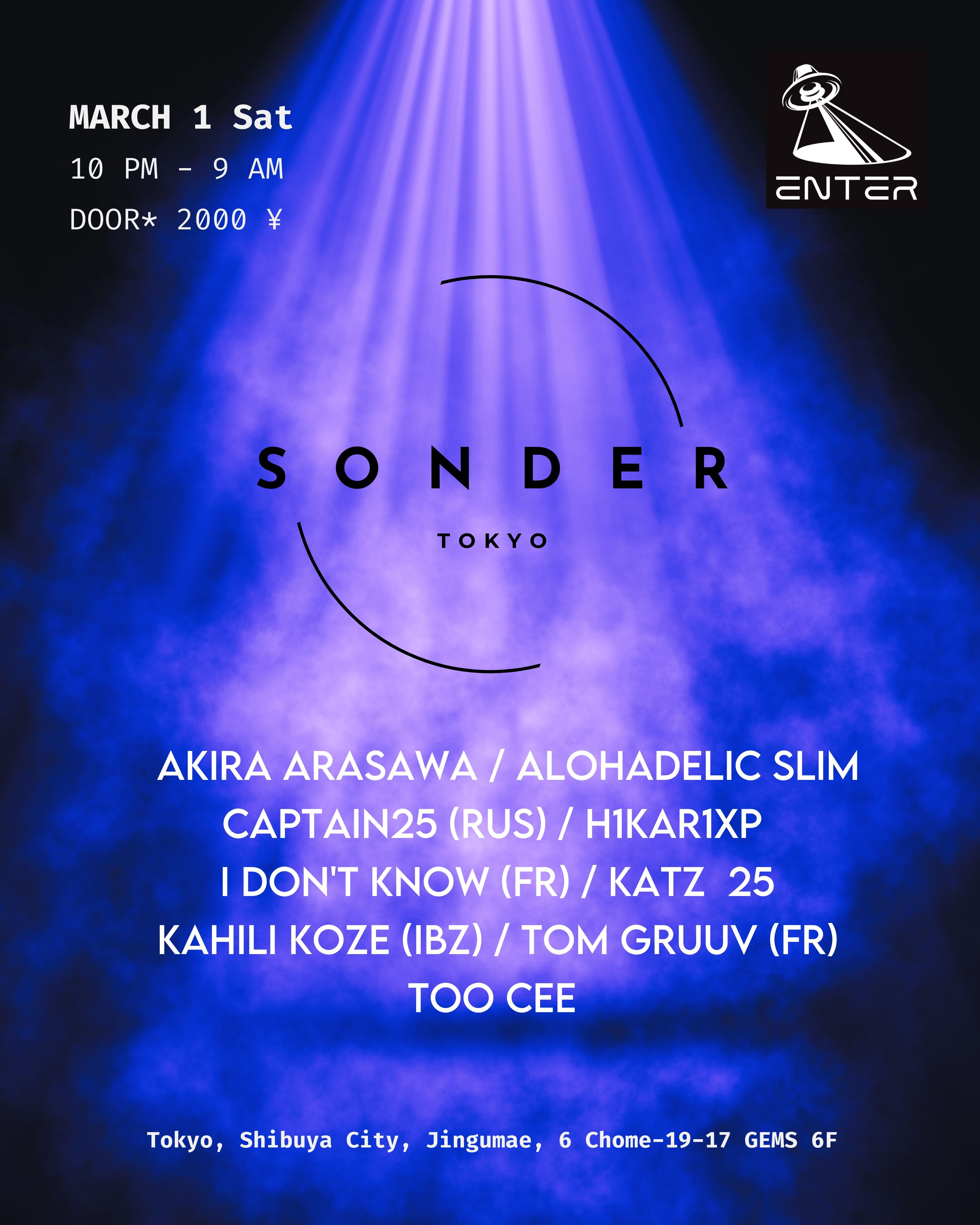 東京の中心、エンター渋谷で行われる忘れられないソンダーパーティにご招待します。ハウス、テクノ、ニューディスコ音楽の魅力的な雰囲気を体験してください!
