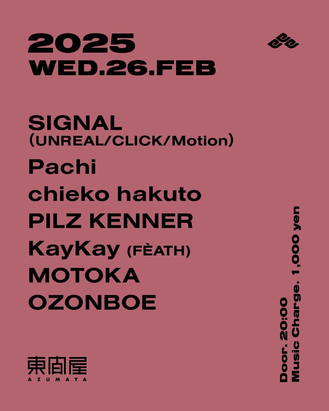 2025.02 26 FEB Azumaya -Wednesday- HOUSE TECHNO 0 Shares Facebook Twitter google Line DATE: 2025-02-26 WED OPEN: 20:00 VENUE: PRICE: Music Charge 1,000yen LINE UP: SIGNAL (UNREAL/CLICK/Motion) Pachi chieko hakuto PILZ KENNER KayKay (FÈATH) MOTOKA OZONBOE