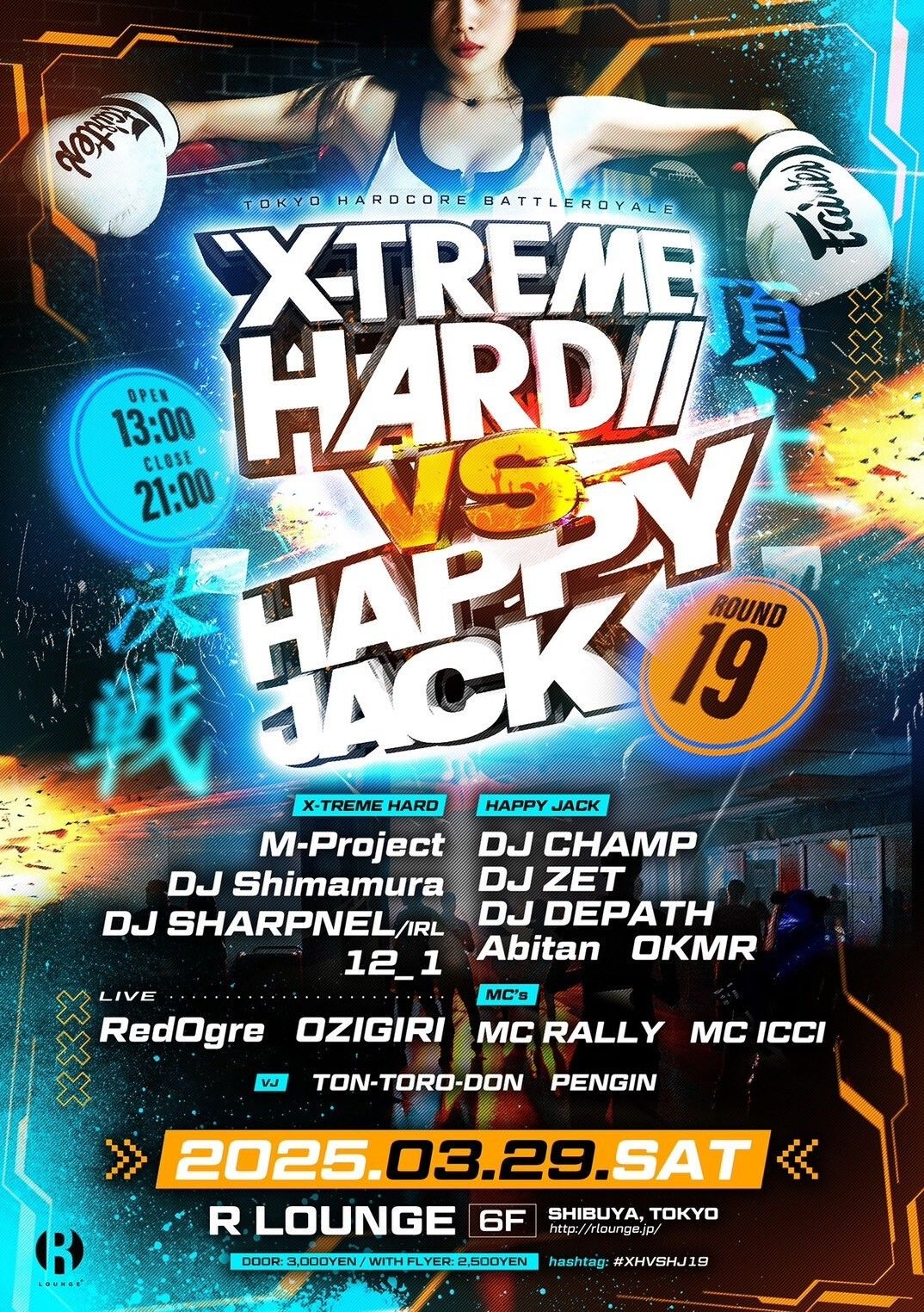 東京最狂ハードコアパーティーを謳う"X-TREME HARD"と東京最幸ハードコアパーティーを謳う"HAPPY JACK"による本気バトル!両陣営から選ばれた精鋭メンバーによる熱闘のゴングが、いま打ち鳴らされる!