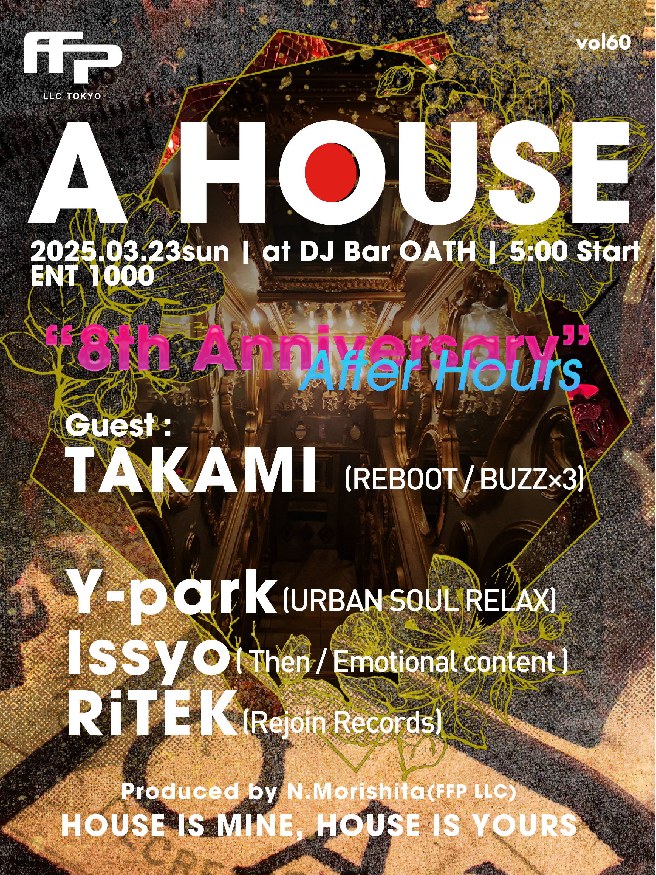 新宿2丁目仲通りのAiiRO CAFEで毎月開催されているHouse music Party 「A HOUSE」が