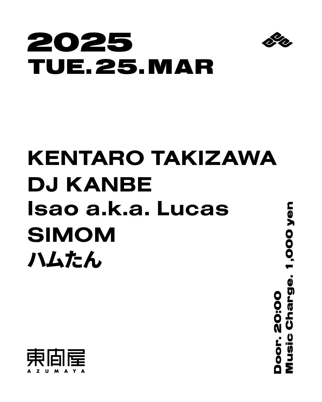 2025.03 25 MAR Azumaya -Tuesday- ALLMIX 0 Shares Facebook Twitter google Line DATE: 2025-03-25 TUE OPEN: 20:00 VENUE: PRICE: Music Charge 1,000yen LINE UP: KENTARO TAKIZAWA DJ KANBE Isao a.k.a. Lucas SIMOM ハムたん