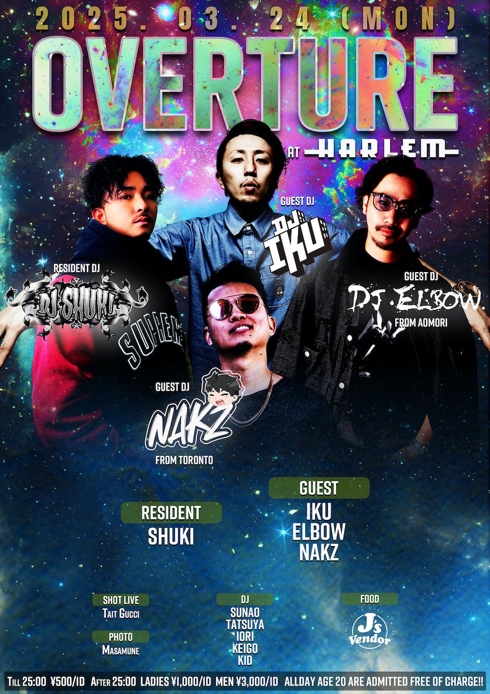 DJ: SUNAO, TATSUYA, IORI, KEIGO, KID