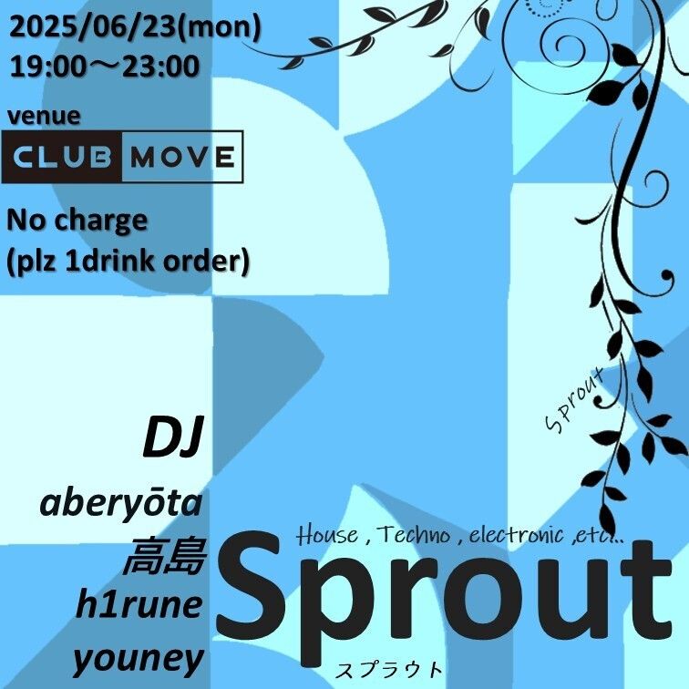 sproutは京都を中心にtechno , house , nardcore , 昭和歌謡等々をplayする高島による4つ打ちを中心とした様々なジャンルの新芽DJの芽生え、成長を促進するイベントです。