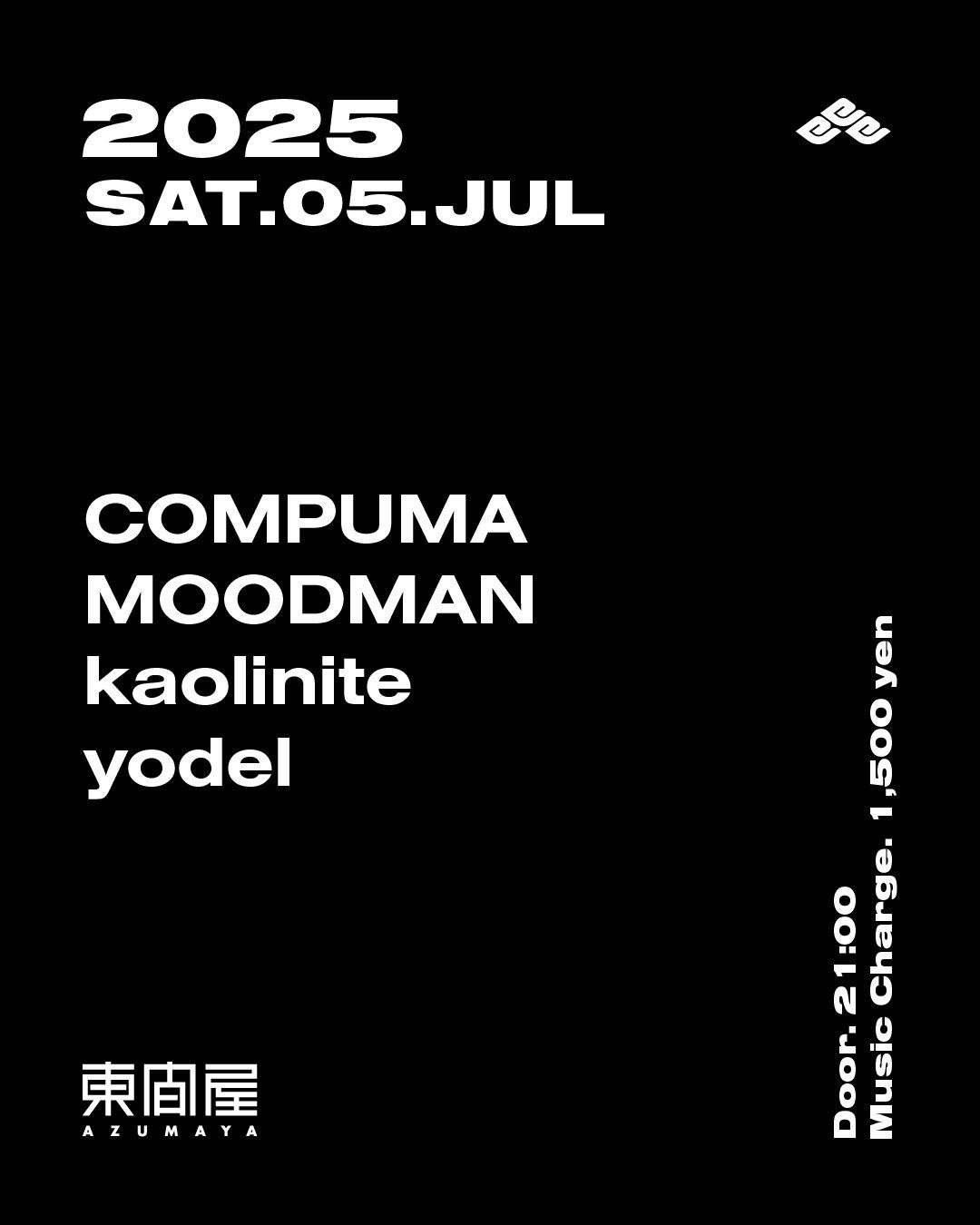 2025.07 05 JUL COMPUMA / MOODMAN / kaolinite / yodel HOUSE TECHNO 0 Shares Facebook Twitter google Line DATE: 2025-07-05 SAT OPEN: 21:00 VENUE: PRICE: Music Charge 1,500yen LINE UP: COMPUMA MOODMAN kaolinite yodel