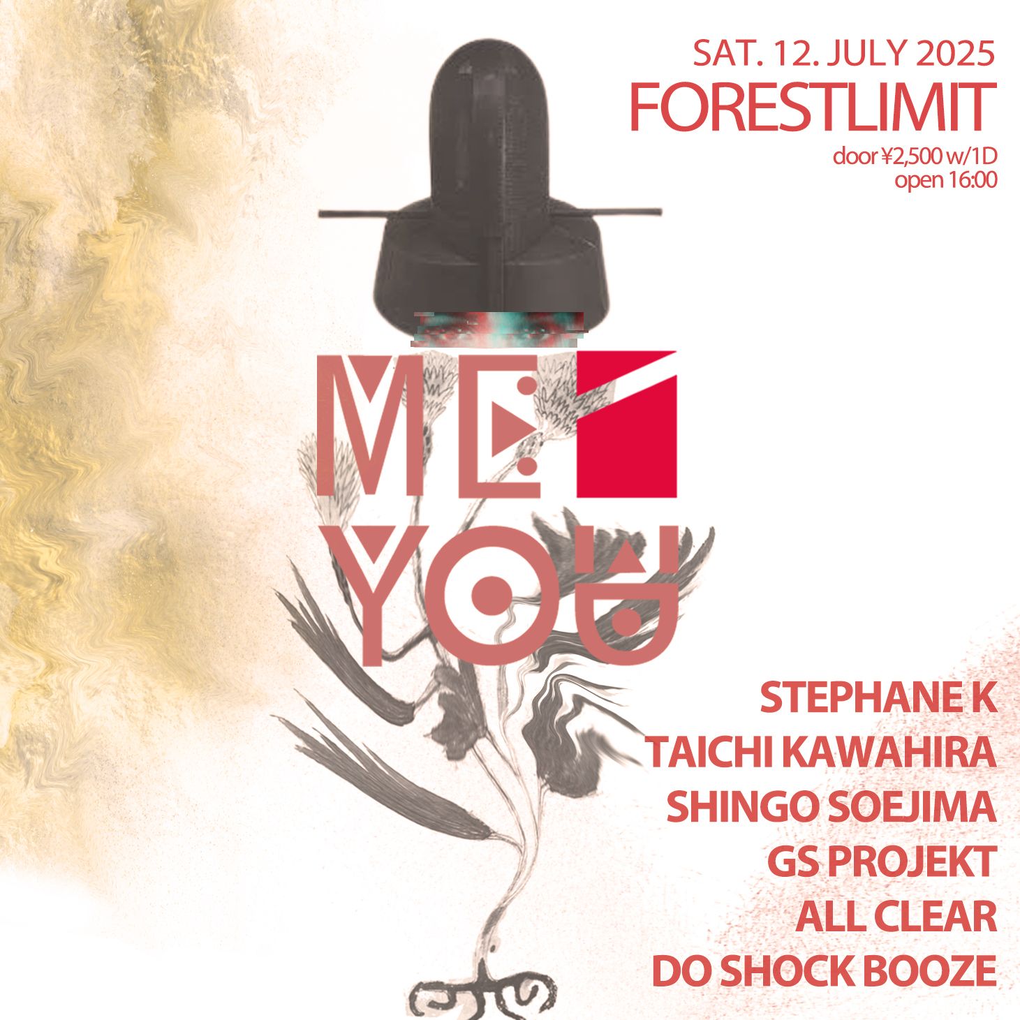 ディープテクノとトランスの深遠な響き、ベース・ミュージックとのスリリングな邂逅。 それらが織りなす暖色の高揚感は、フロアを優しく包み込み、そして解き放つでしょう。主催者 "DO SHOCK BOOZE" が貫くのは、徹底した出音主義と技術主義。しかし何よりも、彼のキュレーションは 「精神の越境」 を目指します。トライバルかつディープでありながらも、ダンサーとの密なコミュニケーションを重んじるその独自の空間は、一種の愛嬌すら湛えた、唯一無二のグルーヴを描き出します。