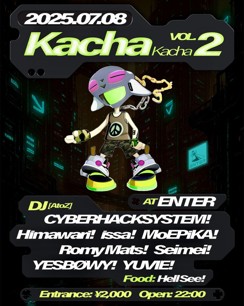 ジャンルを軽々と飛び越える実力派のMoEPiKAを筆頭に、今やFuji Rock Festival、ULTRA JAPANなどの大型フェスティバルに名を連ねるインターネットレーベル〈TREKKIE TRAX〉主宰にして、多くのダンスチューンをリリースしてきたSeimei、先進気鋭のキュレーションで東京のエレクトロニックシーンを総括するインディペンデントレーベル兼パーティ〈解体新書〉のRomy Mats、謎おおき覆面音楽集団Rave Racersの暗幕CYBERHACKSYSTEM、新店舗移動が発表された老舗セレクトショップCANNABISのオーナーであり、同時に多くのパーティに出演、常に音楽とファッションの交差点にいるカルチャーアイコンHIMAWARI、ストリートシーンにてファッション/グラフィックデザイナーとして活動する傍、自身のブランド活動とDJ活動を並行し、ストリートカルチャーの融解点として活躍するYESBØWY、飛ぶ鳥を落とす勢いで人気急上昇中の関西発 DJ クルーのFULLHOUSEより、現在東京を拠点に活動しナイトイベント、レセプションパーティと活躍の幅を広げるYUVIE、大阪を拠点に活動するスーパーハッピーボーイ issaが登場。濃厚なグルーヴと濃密なミックスで夜を引き締める。
