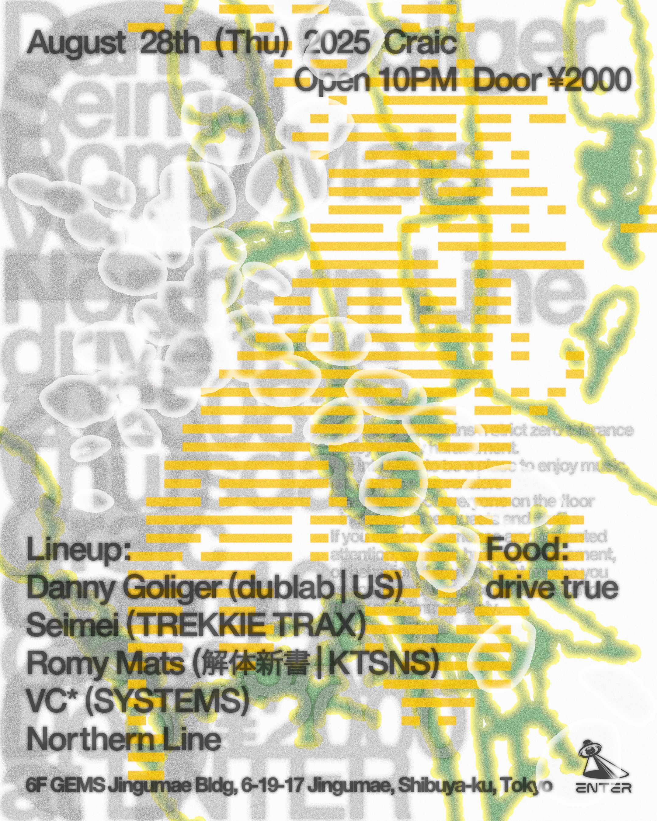 Seimeiは、レーベル〈TREKKIE TRAX〉を共同主宰し、クルーとしてFuji Rock FestivalやULTRA JAPANに出演。数ヶ月前には実弟CarpainterとのUSツアーも行い、ソロでも国内外を問わず活躍を続けている。2024年には、NY拠点の〈Sorry Records〉より「Tokyo Funky Breaks EP」をリリース。DJ MagやMixmagでも取り上げられ、プロデューサーとしての評価も高い。