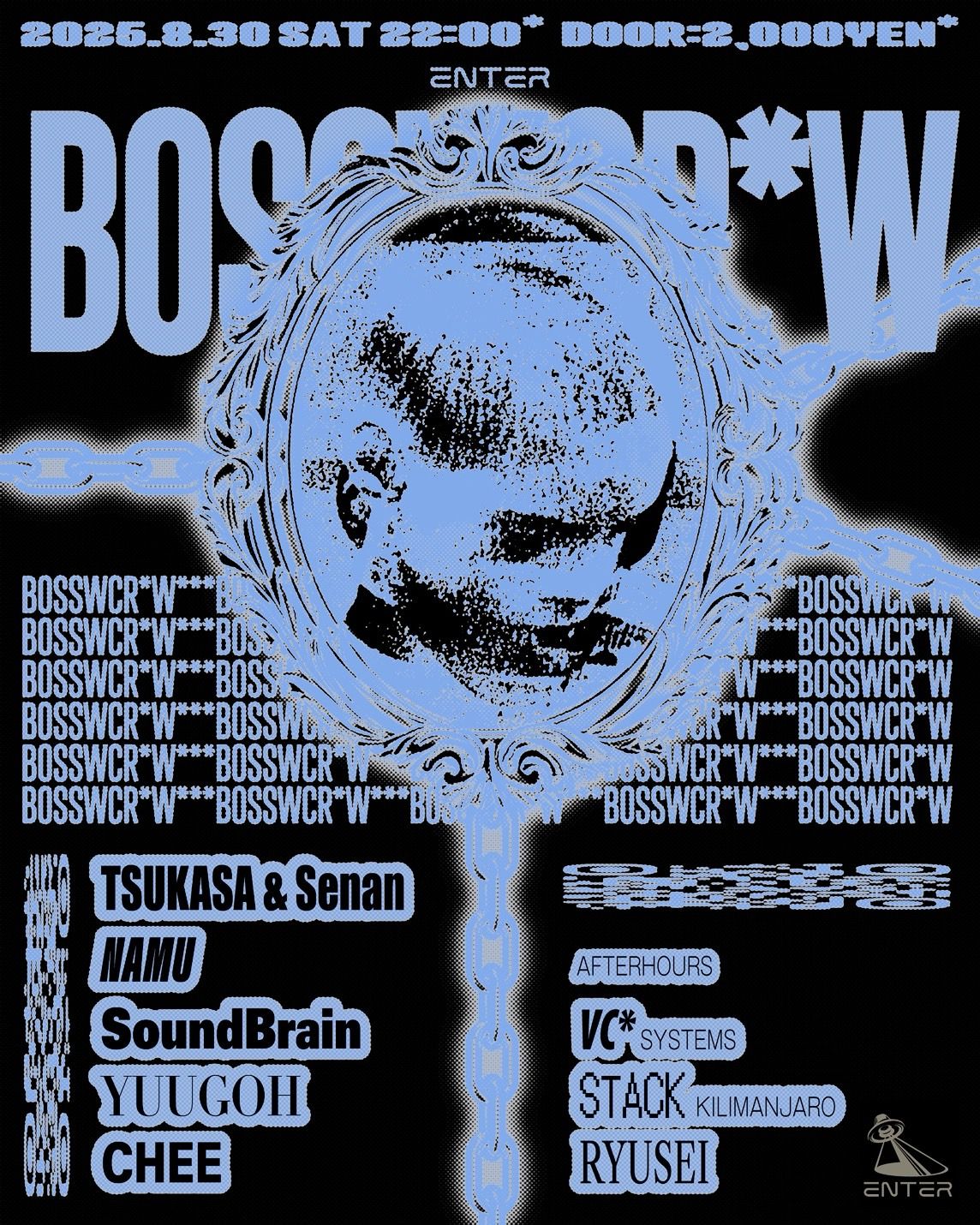クリエイティブチームNOISYとyu 結が発起した東京拠点のイベントクルーBOSSWCR*W。青山蜂にてローンチパーティを開催し、3回目は、場所をENTER SHIBUYAに移し、同年代を中心に構成されたラインナップでアンダーグラウンドシーンに接近していく。