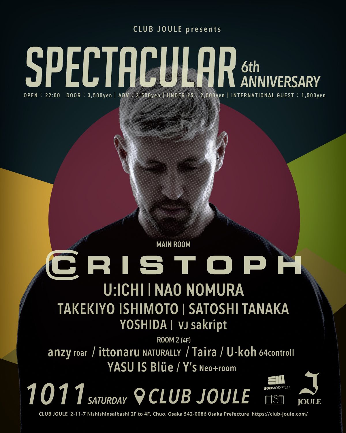 彼の真の躍進は、Eric Prydzが新たに立ち上げたレーベル Pryda Presents への起用によって加速した。「Feel」「EPOCH」といった名曲は、豊かなテクスチャーと緻密な構成でエモーションを描き出し、Cristophの地位を確固たるものとした。スタジオワークのみならず、そのDJ/ライブセットはシネマティックな物語を紡ぐマスタークラス。高揚感に満ちたピークから深遠なクロージングまでをシームレスに繋ぎ、Tomorrowland、Ultra、Creamfieldsといった大規模フェスティバルから、クラブでの伝説的なOpen to Closeに至るまで、世界中を舞台に活躍してきたCristoph。そのプレイを堪能してほしい。さらに、WOMBで開催されているmelodic/progressiveの代表的なパーティー WEAVES より U:ICHI がJOULEに初登場。そして、関西のシーンを牽引するDJ陣が集結する「SPECTACULAR」をぜひ体感いただきたい。皆さまお誘い合わせの上、ご来場をお待ちしております。