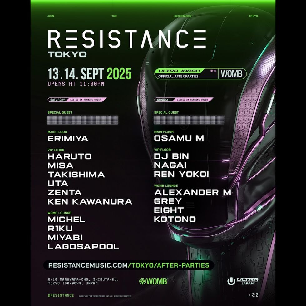 9月13日、14日にお台場で開催される、世界中のダンスミュージックファンを熱狂させている都市型ダンスミュージックフェスティバル・ULTRA JAPANの、毎年恒例の Resistance のアフターパーティーを両日 WOMB にて開催決定!