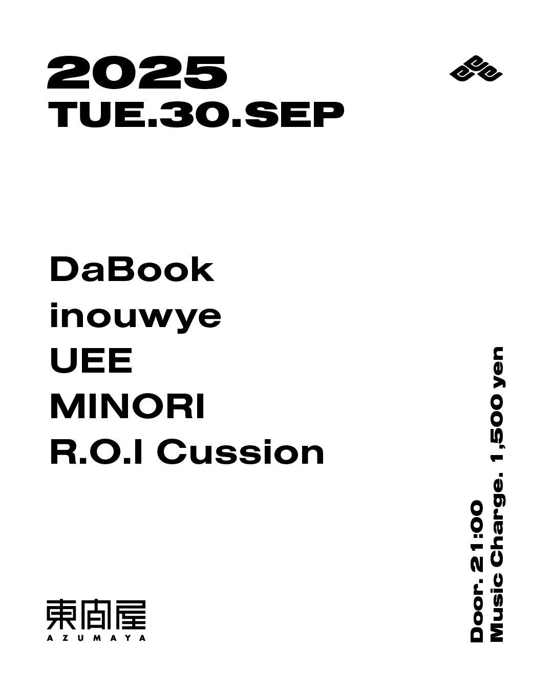 2025.09 30 SEP Azumaya -Tuesday- ALLMIX 0 Shares Facebook Twitter google Line DATE: 2025-09-30 TUE OPEN: 21:00 VENUE: PRICE: Music Charge 1,500yen LINE UP: DaBook inouwye UEE MINORI R.O.I Cussion