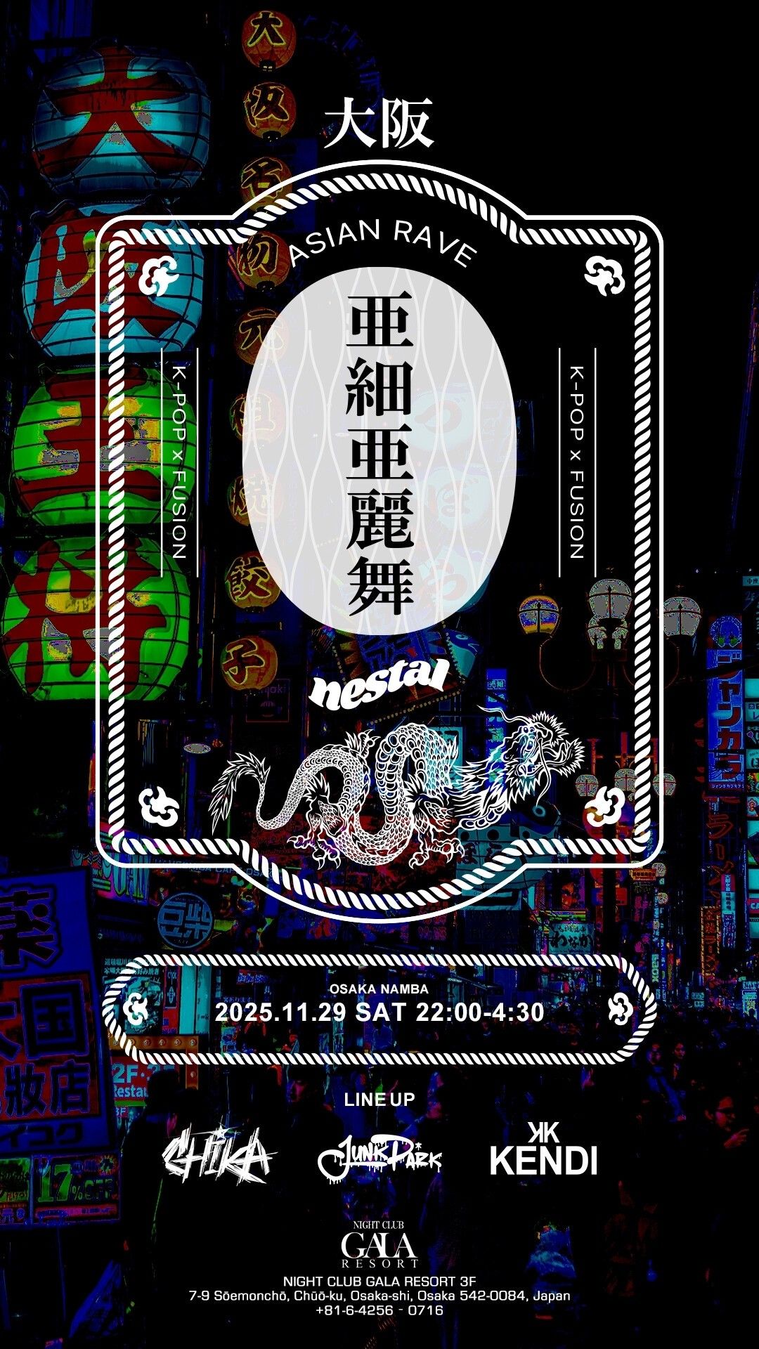 東京・名古屋で話題沸騰のK-POPクラブイベント「NESTAL」が、ついに大阪・なんばへ上陸。最先端のマッシュアップから最新チャート、ファンダム必聴の名曲まで、トップDJ陣が夜をノンストップで盛り上げる。