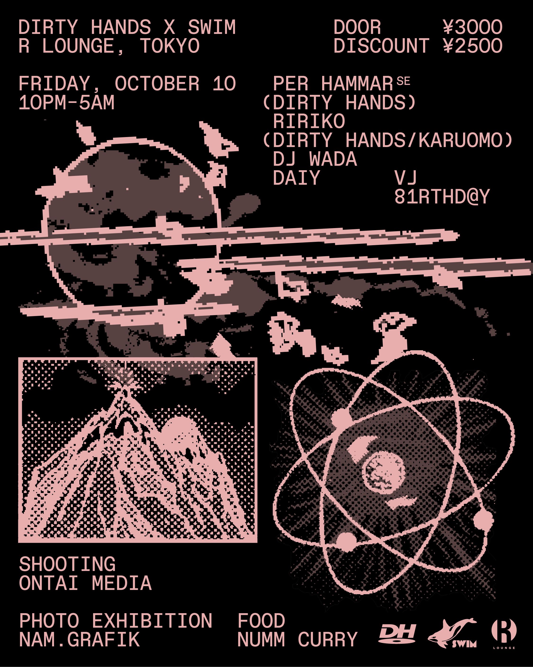 10月10日、渋谷R Loungeにて、スウェーデン出身のDJ / Producer、Per Hammarが主宰する世界的レーベル”DIRTY HANDS”と、R Loungeで開催中の高純度のミニマルテクノイベント、”SWIM”が、コラボレーションイベントを開催する。