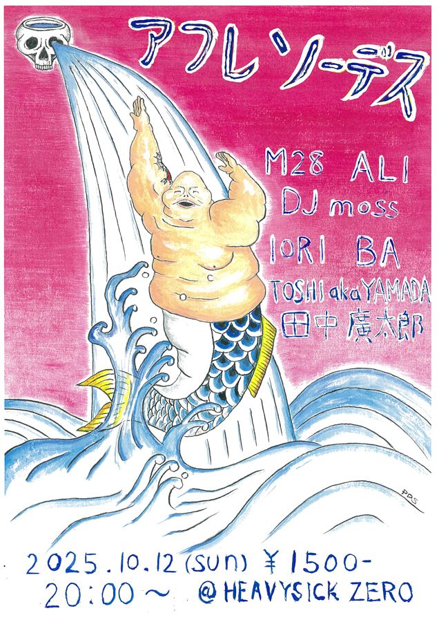 2025.10 12 OCT アフレソーデス HOUSE TECHNO JAZZ OTHER 0 Shares Facebook Twitter google Line DATE: 2025-10-12 SUN OPEN: 20:00 VENUE: PRICE: [DOOR]1,500YEN LINE UP: ■DJ M28 djmoss IORI TOSHIa.k.aYAMADA 田中廣太郎 ALI BA https://heavysick.co.jp/zero/