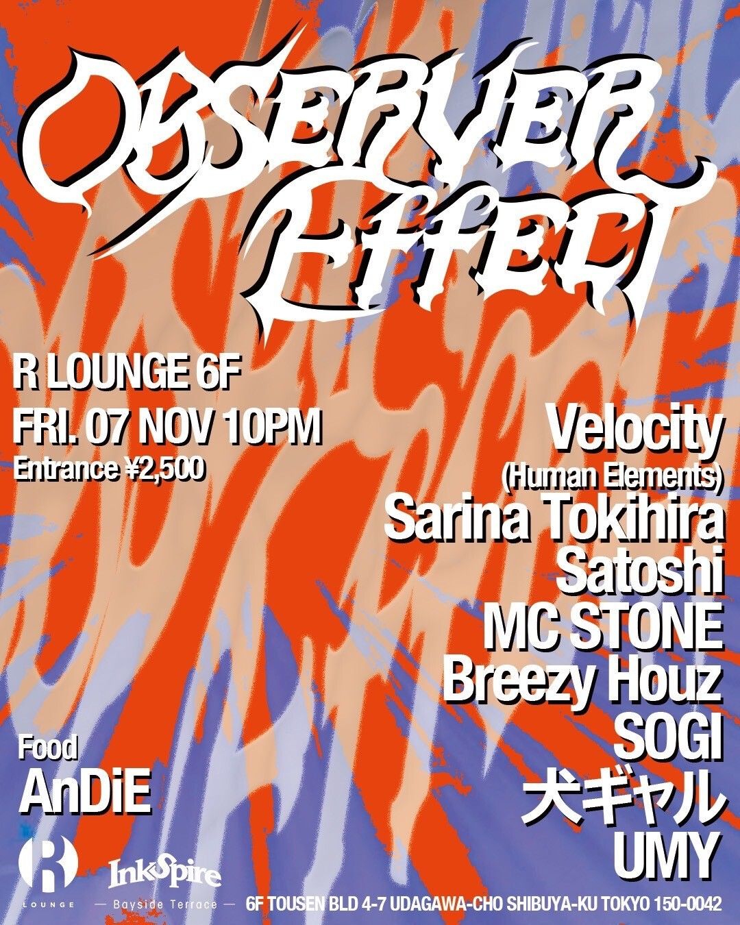 奇数月第1金曜日、HANGOVER所属SatoshiとR LOUNGE スタッフ UMYによるObserver Effect。