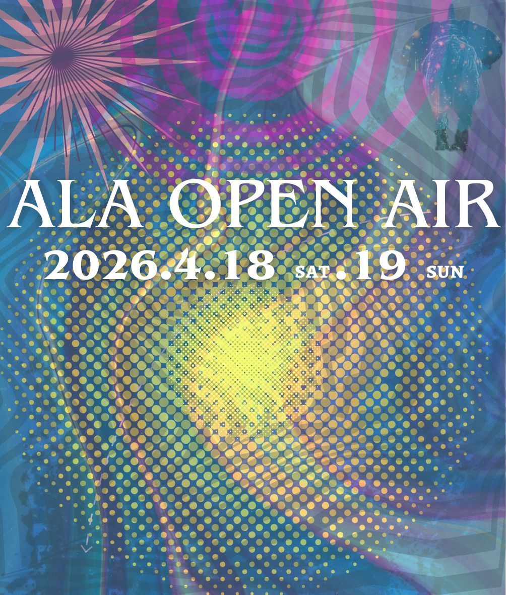 深くトランシーなテクノを中心に、ライブアートやアンビエンスなど多彩な表現が交差する屋外パーティ ALA Open Air が、2026年4月18日〜19日に千葉・睦沢町のローカルスポット「とり亀つりぼりカフェ・キャンプ場」にて開催される。