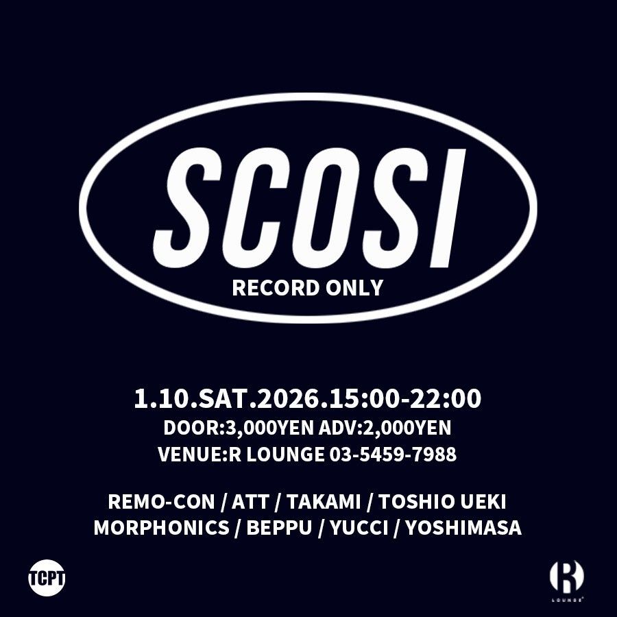『どこかでみたロゴだな? REMO-CON、TAKAMI、TOSHIO UEKIなど人気DJがレコードだけでDJする人気パーティー“SCOSI”が渋谷 R LOUNGEにて開催決定!』