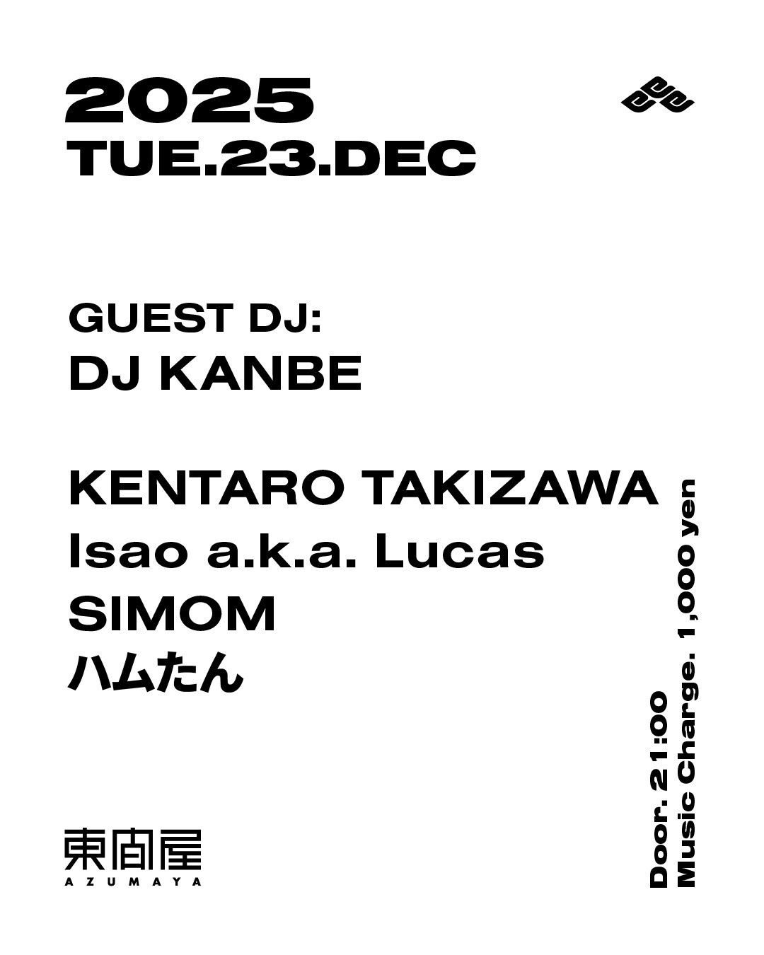 2025.12 23 DEC Azumaya -Tuesday- ALLMIX 0 Shares Facebook Twitter google Line DATE: 2025-12-23 TUE OPEN: 21:00 VENUE: PRICE: Music Charge 1,000yen LINE UP: GUEST DJ: DJ KANBE KENTARO TAKIZAWA Isao a.k.a. Lucas SIMOM ハムたん