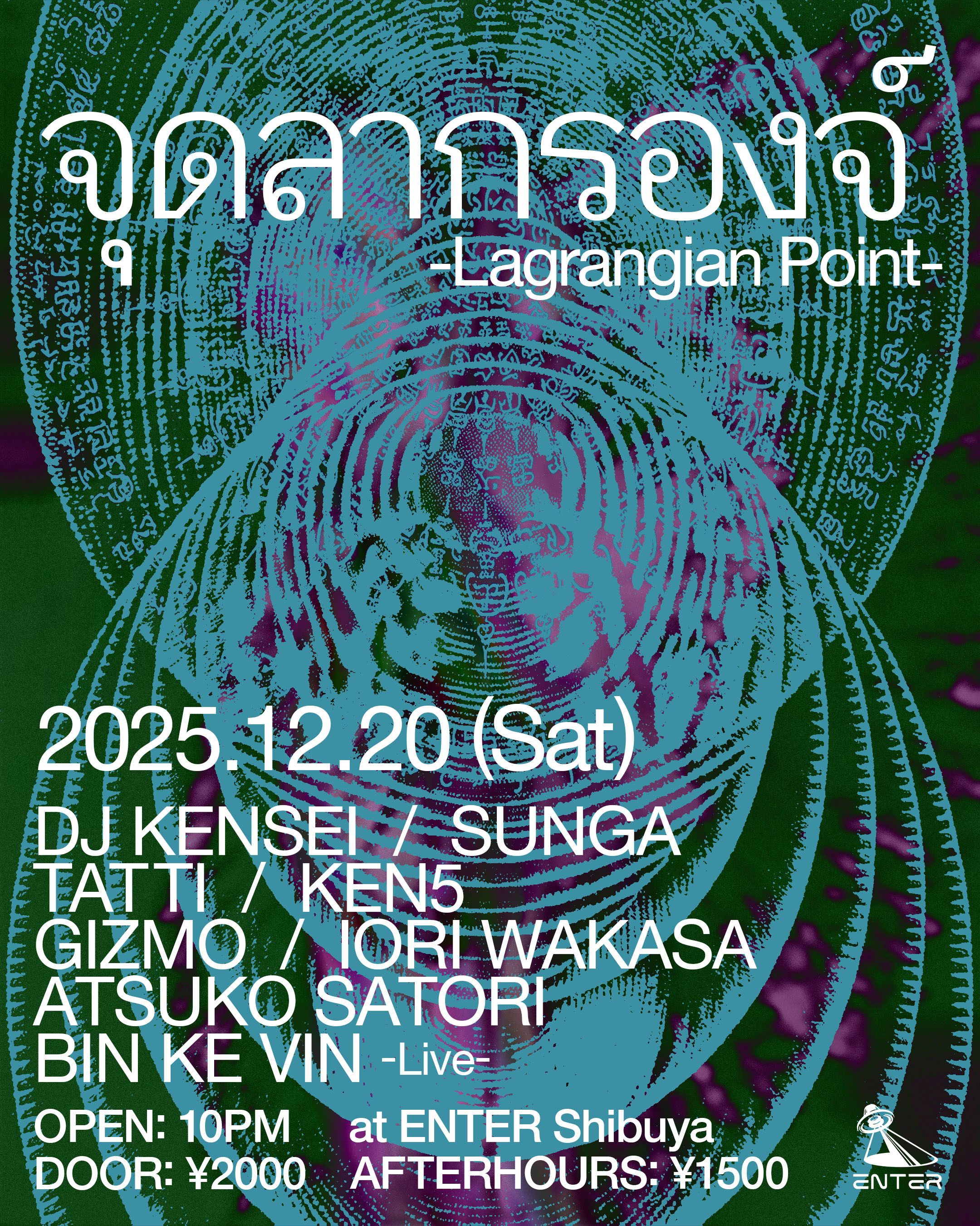 東京アンダーグラウンドの礎を築き続け、近年制作/DJのみならずレーベル〈sorameccer sound design〉のディレクション等多岐にわたり活動を続けるレジェンド DJ KENSEI を筆頭に、ベトナム・フーコックでのカウントダウンを経て活動の重心をアジアへと広げ、深化し続ける巨匠 SUNGA、そして長年にわたり東南アジアの現地パーティやアーティストと密接に交わりながら独自の質感を研ぎ澄ませてきた TATTI が登場。