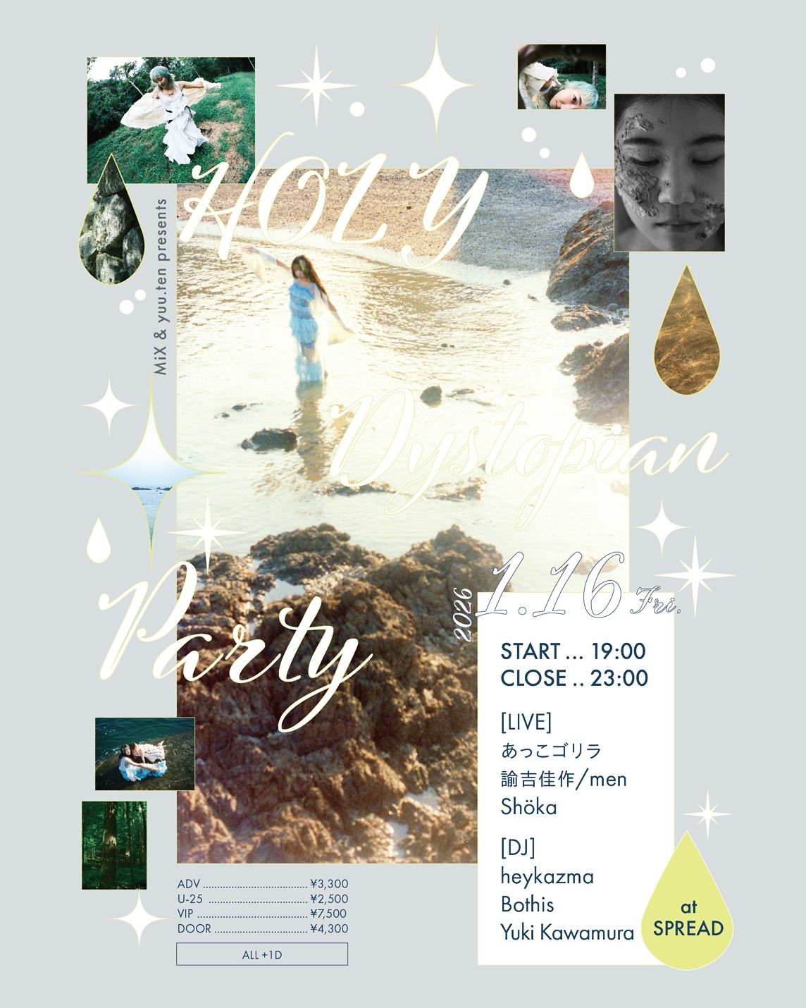 2026年1月16日(金)SPREADにて、少女写真家 飯田エリカが作品を発表するZINEシリーズの新刊「MiX Vol.3 HOLY Dystopian Party」発売を記念してライブイベントを開催いたします。豪華アーティスト多数出演予定です。お楽しみに!