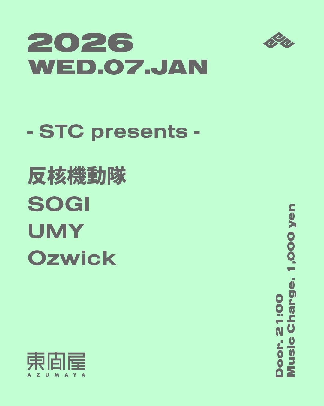 2026.01 07 JAN - STC presents - DISCO 0 Shares Facebook Twitter google Line DATE: 2026-01-07 WED OPEN: 21:00 VENUE: PRICE: Music Charge 1,000yen LINE UP: 反核機動隊 SOGI UMY Ozwick
