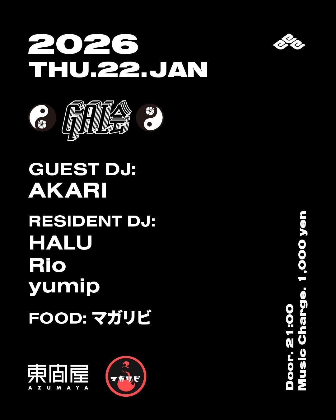 2026.01 22 JAN ギャル会 DISCO 0 Shares Facebook Twitter google Line DATE: 2026-01-22 THU OPEN: 21:00 VENUE: PRICE: Music Charge 1,000yen LINE UP: GUEST DJ: AKARI RESIDENT DJ: HALU Rio yumip FOOD: マガリビ