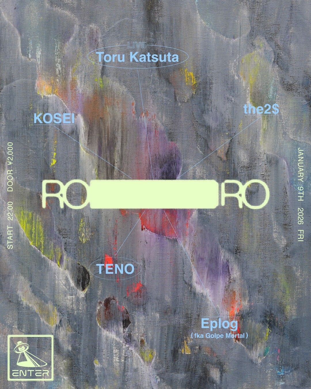 TENOとToru Katsuta、そしてROIROレジデントであるEplog、KOSEI、the2$が織り成す首尾一貫したエネルギーが、一夜を通し、緊張と解放が共存するダンスフロアを構築する。