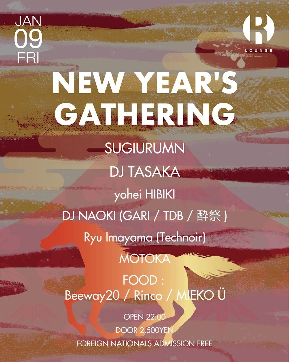 『R LoungeのニューイヤーパーティにSUGIURUMNとDJ TASAKAがヘッドライナーで登場』